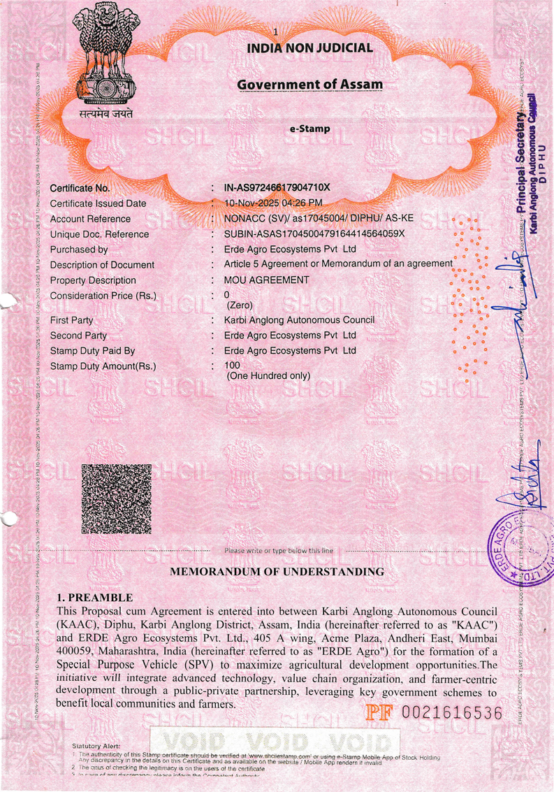 This partnership reflects a shared vision of transforming agriculture in the NorthEast by empowering local farmers, promoting modern and sustainable farming practices, and building an integrated, technology-driven supply chain ecosystem. Together, we look forward to driving long-term sustainable growth and creating meaningful impact for farming communities across the region.